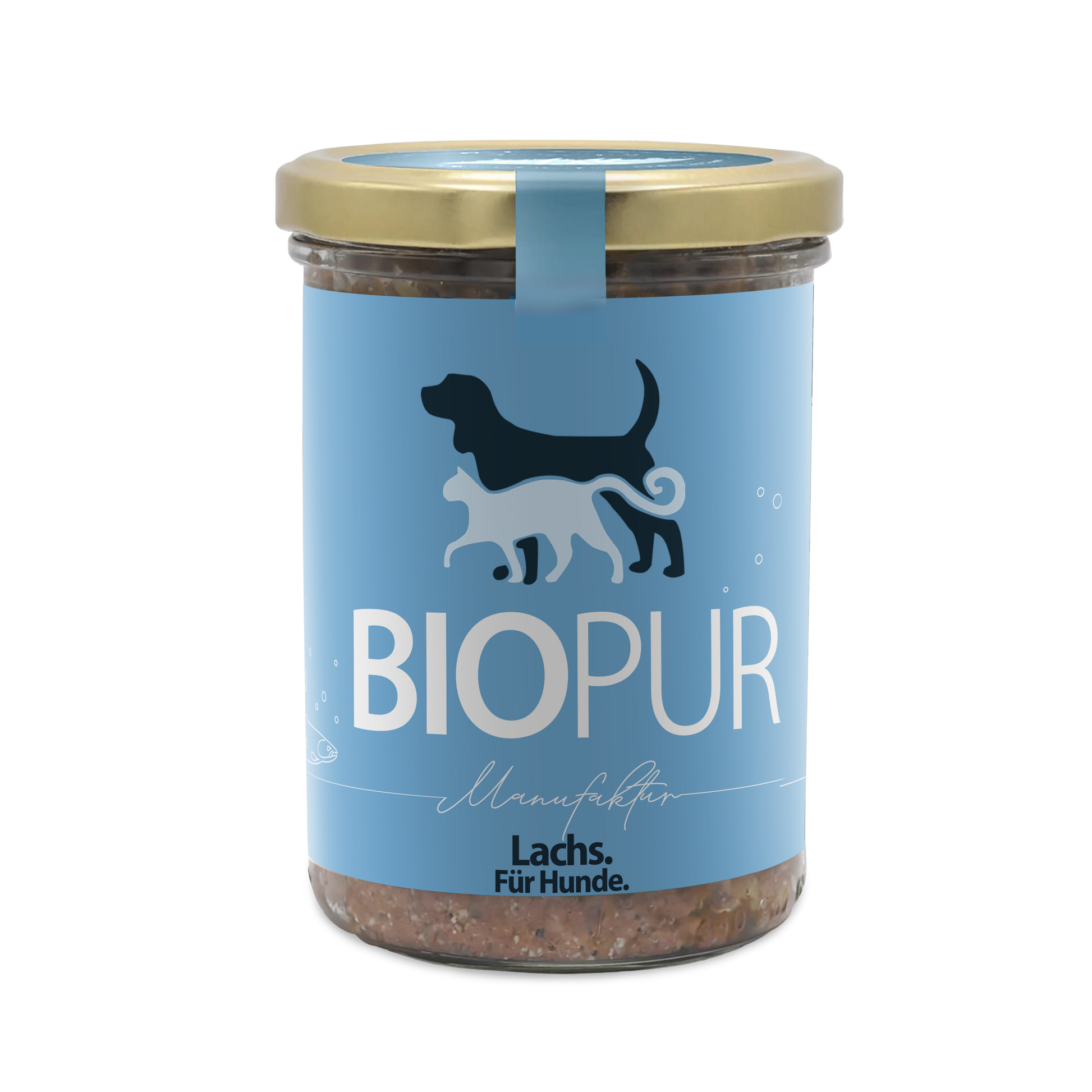 Unser BIOPUR Premiumglas Lachs kombiniert saftigen Bio-Lachs mit nahrhafter BIO-Brühe, leicht verdaulichem Bio-Reis sowie feinen Bio-Karotten und Bio-Kartoffeln – ideal für Hunde, die eine ausgewogene, natürliche Ernährung schätzen. Wertvolle Omega-3-Fettsäuren aus Lachs und Lachsöl unterstützen Haut und Fell, während Flohsamenschalenpulver und Mineralstoffe die Verdauung fördern und die Nährstoffversorgung abrunden. Schonend zubereitet und besonders bekömmlich.