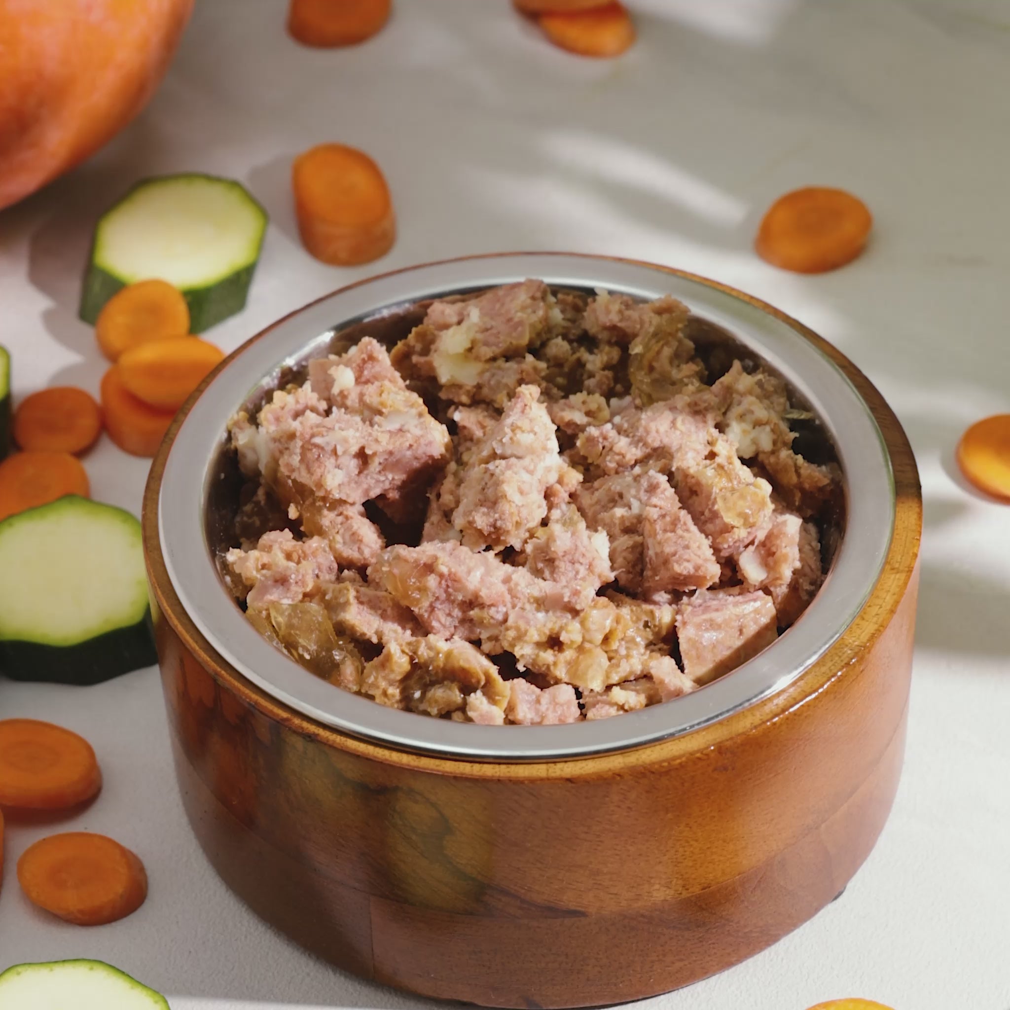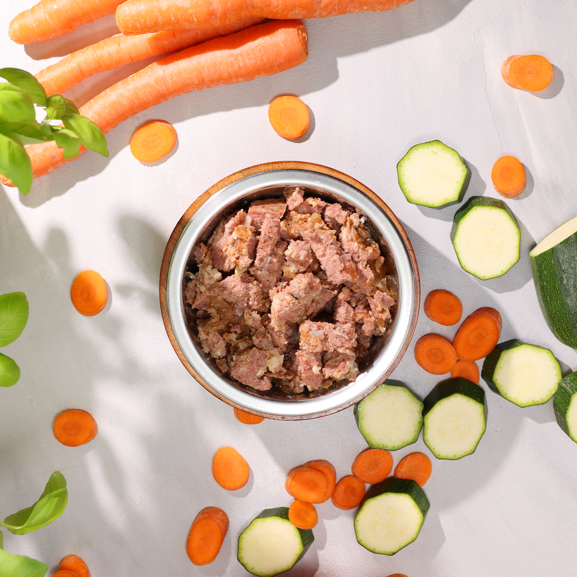 | Ein 18 Kg schwerer Hund benötigt etwa 600 g von unseren Pur-Menüs täglich. |
